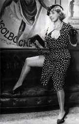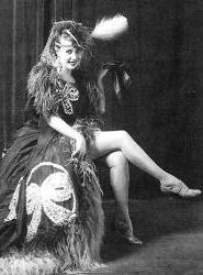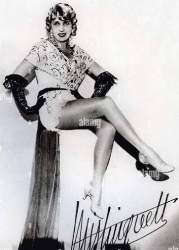 *Als diese Fassung anno 1930 herauskam, war Jeanne Bourgeois alias "Miss Tinguette" alias "M." noch ein internationaler Star. Sie sang nicht nur, sondern tanzte auch - vor allem in Pariser Nachtclubs und Striplokalen - und lie� daher ihre Beine hoch versichern. Na ja, was damals als "hoch" galt. Anno 1919, als sie die Versicherung abschlo�, waren 500.000 Francs noch viel Geld - zumal f�r die Beine einer mittlerweile 44-j�hrigen. Aber binnen weniger Jahre - nicht nur in Deutschland war Inflation - sank sein Wert auf etwa 1/10. Wie dem auch sei, ich habe hier ein paar Bilder zusammengetragen - zum einen Photographien, zum anderen Plakate von ihren Auftritten.