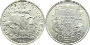 Aber Portugal prägte ab 1963 Blechmünzen mit einem neuen Schiffstyp - mit schlaffen statt vollen Segeln, wie böse Zungen bemerkten -, die bis zur Einführung des Teuro gültig blieben. (Und Griechenland tat das seit den 1970er Jahren auch wieder; aber da ging ich schon nicht mehr zur Schule ;-) Und ehe ich's vergesse: Auch in Argentinien gab es in den 1960er Jahren eine Münze mit Schiffsmotiv.