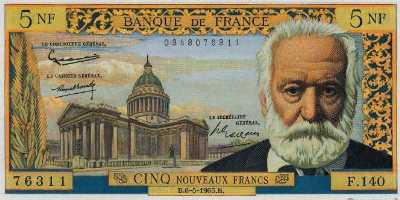 Auf dem 5-Franc-Billet befand sich Victor Hugo, und wer dessen Lebenslauf kennt (möglichst aus Vor-Wikiblödia-Zeiten) weiß, daß auch der eine drastische politische Kehrtwendung vollzog, vom Anhänger Napoleons III zu dessen Todfeind. Zufall?