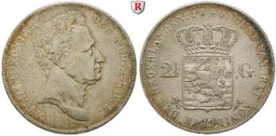 Daher führte man 1840 Münzen mit dem komischen Nominalwert von zweieinhalb G[ulden] ein, die dem Reichsthaler (niederländisch "Rijksdaalder") entsprachen und