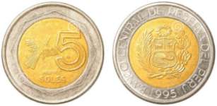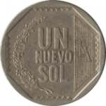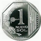 Und als man sich wenig später entschloß, dem Goldstück guten Stück ein entsprechendes ansprechendes neues Design zu verpassen, entschied man sich beim stilisierten "P" in "Perú" ehrlicherweise nicht für eine Sonne, sondern... für eine Kackwurst! Und das ist bestimmt kein Zufall: Das stilisierte Etwas im rechten Feld, das offiziell für die Hauptstadt "Lima" stehen soll, kann man nämlich auch als Strichmännchen ansehen, das mit angezogenem Knie auf der Toilette (oder am Straßenrand, wie das in weiten Teilen Perús noch immer üblich ist ;-) hockt und auf den NUEVO SOL scheißt; der Medailleur - der selbstverständlich im Ausland saß - wollte wohl zum Ausdruck bringen,