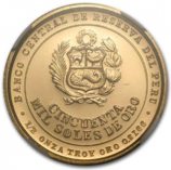 1979 legte man noch einmal eine echte Goldsonne auf, aber diesmal stand schon "50.000 TeurosSoles" drauf, und es war nur eine halbe Unze, d.h. die Goldunze hatte erstmals die vermeintliche Schallmauer von 100.000 Soles durchbrochen, denn der Feingehalt betrug ja nur 0,9166. Immerhin, noch gab es Geldscheine zu 1.000 Goldsonnen; aber die reichten damals - ich war da, kann es also persönlich bezeugen - gerade noch für eine große Flasche Coca Cola.