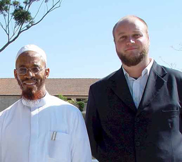 | In 2001, Hasaan began to grow a beard and began wearing Muslim clothing such as a kufi. Instantly, he began to attract attention from people around him and for the first time he felt like he was no longer part of mainstream society. Although painful, he managed to adjust and actually began to dress in such a way that he drew a LOT of attention. He began to wear a turban and a long flowing jilbab and coloured his beard jet black. He realised that whenever he did good deeds or displayed good manners, the image of Islam would be improved. This became his method of dawah: "display good manners to everybody and make sure everybody knows you are a Muslim". | ![]() |