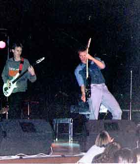 Hasaan sold his tenor saxophone in 1993 and purchased what is now known as "#1", an Ibanez EX-370 guitar with gold hardware and a flame-maple top. The guitar was modified immediately after purchase with DiMarzio PAF PRO pickups. "Beg, Borrow & Steel" became well known in the Hastings area and received plenty of work. Hasaan began teaching guitar in a local music shop in addition to presenting a radio program on a local station that featured guitar music. He used his earnings to buy more and more guitars, favouring Ibanez JEM777 models with their distinctive monkey grips and elaborate paintwork. Hasaan's main influence at this time was Steve Vai who designed and endorsed the JEM. Hasaan performed at the opening night of the new Port Macquarie RSL and also competed in the 1993 KFC/NRTV Student of the Year Awards where he won the "Entertainer of the Year" title. He stunned the audience by playing his guitar with a Makita cordless electric drill in the middle of his solo. |