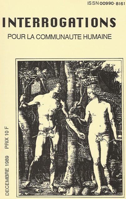 Depuis quelques années, la revue INTERROGATIONS pour la communauté humaine a publié des textes écrits ou traduits par un petit nombre de personnes. Le projet collectif qui sous-tendait cette publication a échoué, comme en témoignait déjà le numéro "spécial courrier-débat" paru en janvier 1991, qui rassemblait des textes individuels écrits un an auparavant. La présente publication ne se situe donc pas comme une suite des précédentes. Elle n'est que l'utilisation d'un cadre existant par certaines participants à l'ex-Interrogations. Elle ne prétend d'ailleurs pas être la préfiguration de ce que pourront produite nos interrogations... et nos affirmations aujourd'hui divergentes, dans l'avenir.