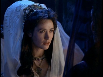 | MARYSA Actress: Katrina Hobbs Biography: As head virgin in the Festival of Dionysus, Marysa was to be first to drink the wine blessed by the God. If Dionysus was pleased with the King, nothing would happen. But if he was displeased, the virgins would go beserk and kill the king and queen and the head virgin would marry the heir to the throne. The evil Prince Pentheus had Ares possess the wine so the evil god could control the virgins and make them kill the king and queen, but Hercules was able to stop them killing the king and queen. Marysa then married Pentheus' younger brother Nestor. |
