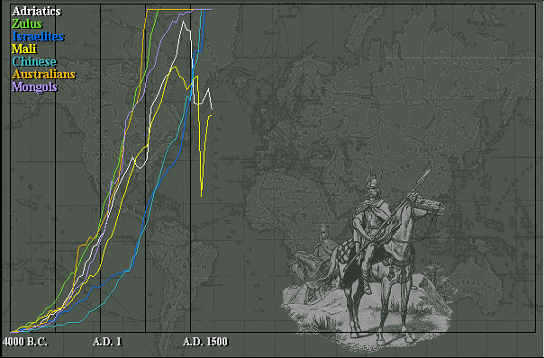 | Australia - 5.6 | Israel - 3.0 | Mongolia - 2.9 | Zulu - 2.7 | China - 2.1 | Mali - 2.1 | EU - 1.9 |