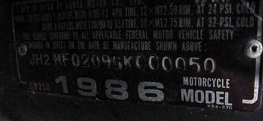 | VIN # JH2MF0209GK000050 |
