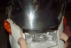 | 2. The black strip has a strip of double back tape in the middle. Carefully remove it. Stand in front of bike and tilt windshield strip cowl ( Black strip that says HONDA on it) toward you |