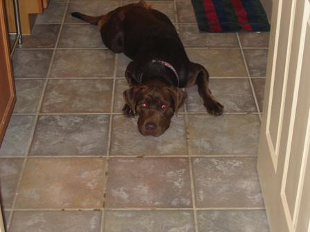 We "previewed" Bruno after lunch, then went back to Columbia Veterinary Hospital after work with Rusty in another car. We took them out to Cosmo Park to play together, and they did okay, so we brought Bruno home. (Note: his name wasn't actually decided at that point. He went by "Bubba" for the first year and a half of his life.) Patch didn't seem to notice that we hadn't always had two dogs. Tomás supervised when Bruno inspected the house. Nisa freaked out and stalked the new arrival with arched back and puffed tail. She took a couple of days to accept Bruno as another of her adoring subjects. Lulu was frightened of Bruno at first, but she seems to be accepting him slightly better than Rusty as of this writing (7/5/04). Happy Fourth of July, y'all!