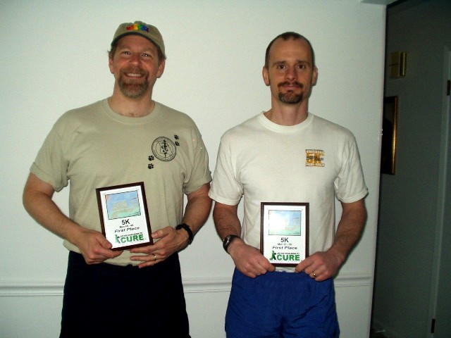 Hugh and Andy with plaques for running fast