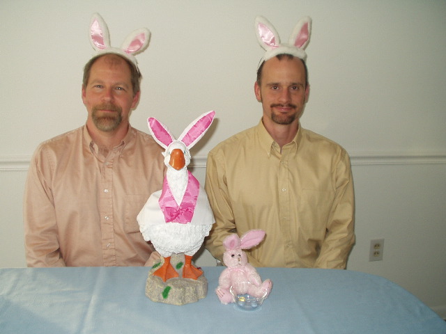 Hugh and Andy as silly Easter bunnies
