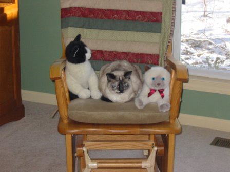 The real Siamese cat in this picture is Madison Deborah Emerson. She came into our lives at about the right time to be considered a wedding present. |