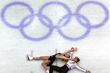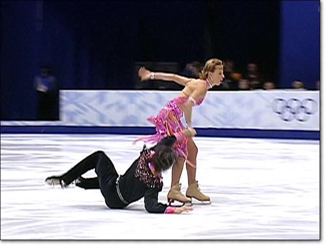 ![]() Jamie Sale & David Pelletier displayed a great sense of humor when they fell at the end of their short program at the 2002 Salt Lake Olympics. |