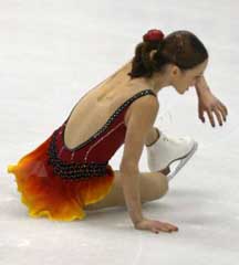 Jennifer Robinson (CAN), Falls during her 2002 Olympic long program. | Sasha Cohen (USA) falls during her 2002 Olympic long program and loses her shot at a medal. |