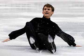 | Todd Eldredge falls during the mens short program at Salt Lake. (AP Photo/Doug Mills) |