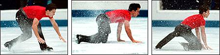 Canada's Elvis Stojko stumbles during the mens short program at Salt Lake. (AP Photo/Lionel Cironneau) | A series of photos showing Michael Weiss (USA) falling at the 1998 Olympics. |