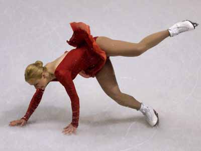 Jennifer Robinson of Canada falls at the 2001 Worlds.