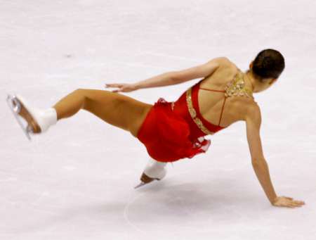 ![]() Michelle Kwan takes the fall in the long program that will cost her the gold medal at the 2002 Olympics in Salt Lake City. Up until that moment, the gold was just within her grasp. A collective sigh was heard around the world by her friends, family, and fans as Michelle took this stumble. It is probably a moment she will replay in her mind over and over for many years to come.(AP Photo by Roberto Borea) |