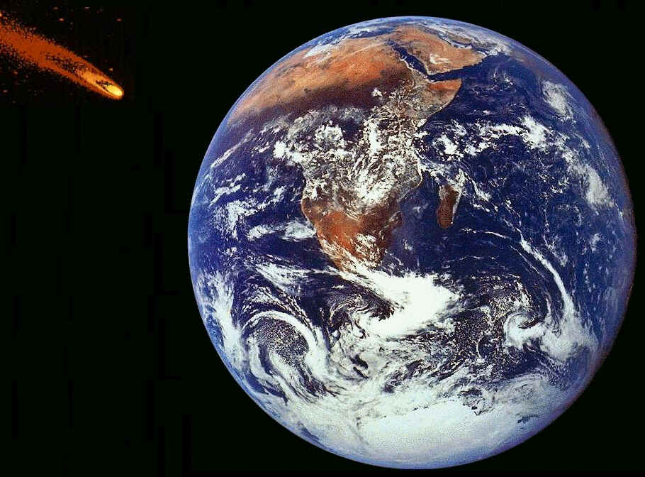 Luego, enseguida, después de la Tribulación de aquellos días, se oscurecerá el sol, y la luna no dará su luz, y las estrellas caerán del cielo, y los poderes del cielo se conmoverán. Entonces aparecerá el estandarte del Hijo del Hombre en el cielo, y se golpearán el pecho todas las razas de la tierra, y verán al Hijo del Hombre venir sobre las nubes del cielo con poder y majestad grande. Y enviará sus ángeles con resonante trompeta y reunirá de los cuatro vientos a sus elegidos, desde un extremo del cielo hasta el otro. (San Mateo 24, 29-31) HARMAGEDÓN El impacto de meteoros contra la Tierra como el que tendrá lugar durante el harmagedón es algo cotidiano. Miles de ellos caen a diario, aunque son tan minúsculos que pasan desapercibidos. Cada diez mil años aproximadamente cae alguno de tamaño considerable. Y la estadística anuncia que no está ya lejos la caída del próximo. Os recuerdo que hace una década, un gigantesco meteoro de nombre Shoemaker-Levy impactó contra Júpiter. Se calcula que si ese astro impactase contra la Tierra habría causado mil millones de muertos. Y, todo esto, seguramente sucederá en el llamado por la Biblia Harmagedón, el fin del mundo. Las escrituras lo anuncian: UNA ESTRELLA CAERÁ A TIERRA; EL SOL NO DARÁ SU LUZ; LA LUNA SE CUBRIRÁ DE SANGRE; LOS HOMBRES SE ASUSTARÁN DEL FUROR DE LAS OLAS... el Apocalipsis nos da más detalles: CAERÁN DEL CIELO PIEDRAS COMO DE A QUINTAL DE PESO; UNA ESTRELLA DE FUEGO IMPACTARÁ CONTRA EL SUELO Y DEL ABISMO SURGIRÁN LOS DIABLOS; TODOS, DESDE EL REY HASTA EL MENDIGO SE REFUGIARÁN EN LAS CUEVAS PORQUE EL DIA DE LA FURIA DE DIOS HA LLEGADO; HASTA LOS HOMBRES MÁS TEMPLADOS TEMBLARÁN... etc. Todo esto ya sucedió en el pasado. Hace sesenta y cinco millones de años un meteoro de diez quilómetros impactó en el golfo de México a una velocidad de noventa mil quilómetros por hora. Levantó olas tan brutales que alcanzaron los cinco Km de altura. Estas olas serian suficientes para atravesar de lado a lado la península Ibérica y llegar hasta la itálica. El impacto de la explosión equivalió a unos cien mil megatones y levantó una nube de polvo tan intensa que toda la tierra quedó a oscuras. Durante más de un milenio la luz del sol quedó apagada... Y lo más curioso es que esto fue predicho por el hijo de un carpintero sin ningún tipo de