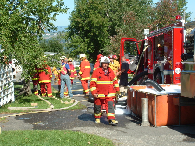 | Intervention au camping Guillemette, d�but d'incendie de s�cheuse au propane. Service incendie survenue en entraide (St-Michel, caserne 15 et St-Charles de Bellechasse, caserne 07) Heure : 09h21 1�re alarme : V�hicules : 202-602 2�me alarme : V�hicules : 207-607-415-615-915 Photo : collaboration sp�ciale, Philippe Beaulieu. |