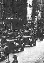 | After it became apparent in 1941 that it would not be possible to procure anymore Landsverk L180 Armoured Cars it was decided to produce a heavy Armoured Car in Ireland. The result was the 4x2 Dodge Heavy Armoured Car designed by Col. J. V. Lawless and Comdt. A. W. Mayne and built by Thos. Thompson of Carlow. The chassis used was from a Dodge TF-37 truck with a 160 inch wheelbase reduced to 135 inches. Five trucks, registration nos. ZC 9483 to 9487 inclusive) were withdrawn from S&T use and supplied to Thompsons for the fitting of armoured bodies. In appearance it looked like a cross between a Ford and a Landsverk with the hull modelled on the Ford and the turret on the Landsverk, although lacking the optical sights. Karl Martin points out one advantage the Dodge had over the Landsverk and Leyland cars, in that being smaller, they were more manoeuvrable on smaller roads. In total 5 were built in two variants, the Mk VII and the Mk VIII, the differences being the armnament, with the Mk VII mounting both a Madsen 20 mm Cannon and a Madsen .303 in MG (though some reports state that the .303 was a Vickers) and the Mk VIII mounting a Vickers .5 in water-cooled HMG and a Vickers .303 in. water-cooled MG. The Dodge armoured cars served with the 1st Armoured Squadron from their delivery in late-1942/early-1943 until withdrawn from use and disposed of. It appears that they were actually withdrawn from use in the 1950s, however their date of disposal varies upon the report, Sgt. D. A. Canavan writing in An Cosantoir (January 1976) puts disposal as the 1950s, while Karl Martin puts it at 1962. Apparently the Dodge Armoured Cars were expensive to maintain and performance must have been inferior to other vehicles available or in service. It is unclear why, when a decision was made to build further heavy armoured cars, that the Leyland model was not used as they seem to have been quite a successful design. In the photograph above (printed in reverse - mirror image, correct image to follow), if studied closely, it appears that the 2 leading cars are Mk VIIs (the 20 mm cannon is just about visable) and the 2 following are Mk VIIIs. It is extremely difficult to obtain photos of and/or information on the Dodge Armoured Cars, so if anyone has some and would be willing to allow it to be placed on this site please forward it to the address on the Home page. |