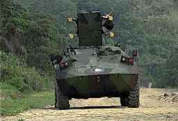 | Three prototypes of the Mk8 were built in Ireland, with the first having a different front hull (see Vickers Mk 11), and the later two having the production front. Original reports suggested that the first Mk8 was basically a streched version of the Mk6 with a similar front including the three large panes of bullet proof glass, however recent information leads us to believe that the vehicle rear is similar to Mk 8 family with the front resembling the front of the Vickers Valkyr FSV, and apparently was fitted with the same engine as later vehicles with similar performance. All Mk8s have improved independent suspension from that of earlier vehicles and thereby having excellent manoeuvrability. Timoney use an innovative construction method in building the Mk8, having the plate joints formed by using high hardness steel extrusions to give a smooth contour. This allows for simpler construction and has the benefit of giving extra protection at the weld zone compensating for any softening that may have ocurred during the welding process. Either a Perkins Phaser or a Cummins 6 CTA diesel engine, coupled to a ZF gearbox, may be fitted, and are located to the drivers right.. The troop compartment has room for 10 troops, seated in 2 rows of 5, facing each other, additionally, 3 more troops may be accomodated between here and the driver. The vehicles is fitted with both a run-flat system and a central tyre inflation system. The Mk8/CM31 6x6 IFV, is currently in limited production and limited service in Taiwan in both APC and SAM configurations. |