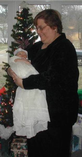 Maggie baptism was performed by Father Neil Ryan at Notre Dame's Log Chapel on December 22, 2002. The ceremony was truly beautiful. I actually cried through almost the whole thing. Not only was I moved by the enormity of bringing our daughter into the Catholic Church, but it was another one of those moments where I was reminded of just how lucky and blessed I am to be the mother of this beautiful little girl. |