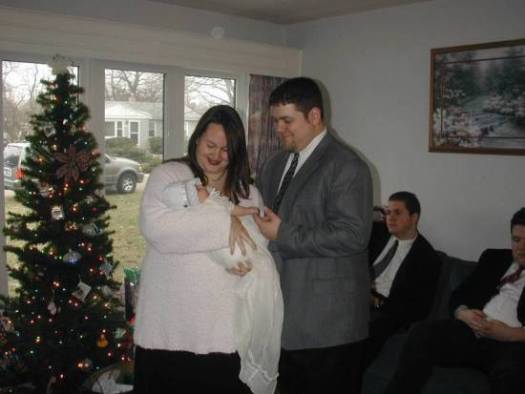 Maggie with her godparents, Aunt Erin and Uncle Joe. |