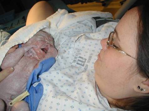 The very first thing they did after Maggie was born was wrap her up and hand her to me. Just looking at this picture makes me cry all over again. I knew motherhood would be unlike anything I had ever experienced before, but nothing can ever prepare you for holding your child for the first time. As soon as I gave the last push and they told me she was out, I started to sob. It took us three long years to make it to this day, but it was worth every blasted second. Even covered in goop, she is the most beautiful thing I have ever seen in my life. |