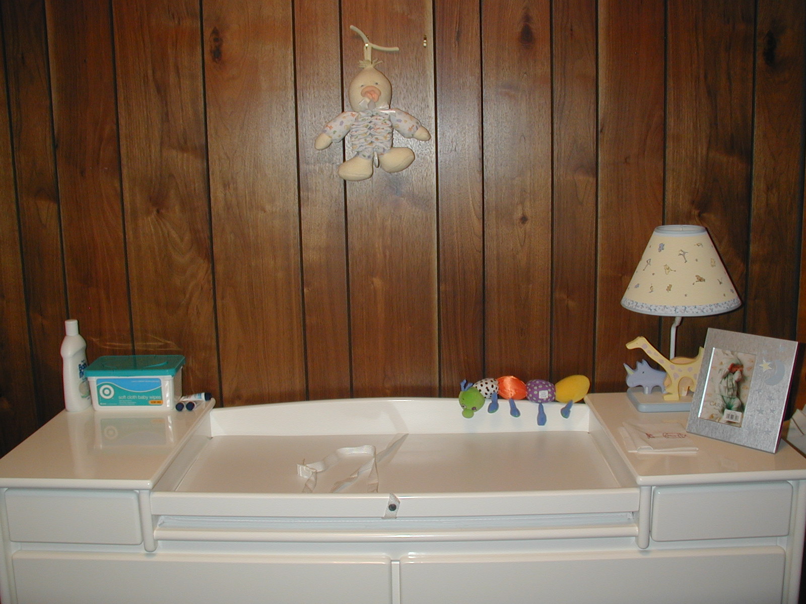 Notice the matching Lennon lamp on the right - it's so cute. The animal hanging on the wall actually plays music - I put it over the changing table to use as a distraction during diaper changing time and it works like a charm. Maggie loves it!. |