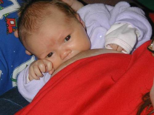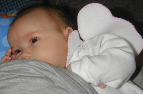 | Although there were some difficult days in the beginning, I have come to truly love breastfeeding Maggie. I love the physical closeness, and the way she looks at me when she is nursing is just beyond compare. Although I love both these pictures, the one of her in her little angel outfit is one of my all time favorite pictures. Looking down to see an angel - in all senses of the word - at my breast may be one of the most intensely beautiful and touching moments I have had as a mother. | |||||||||||||