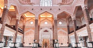 Masjid Putra , putrajaya is one of the many tourist attraction in Putrajaya and Malaysia in general. Built in 1997 and completed in 1999 with total construction cost of RM250 million the mosque is built in inspiration of various kind of architecture. It consists of Islamic, modern, mamluk and Moorish style. In the mosque, there are many pinkish stone carved onto art motifs found on the wall and the dome. At the first glance they look like normal stone or ordinary colored marble but no, they are indeed real pink colored stone. They are attached to the wall and dome and then carved on site onto the motifs. That was unbelievable yet it is a very true story. The workers were brought in from India, working day and night hand carved the stones. On the above ground, the mosque are divided into two levels of prayer hall, the lower level is mainly for Muslimeen (male muslim) and some portion for Muslimat (female muslim). The upper level is exclusively for Muslimat. On the lower level, there is an opening perimeter for tourist to enter the prayer hall and take picture or feel the natural air ventilation. Astonishingly, the mosque was built without any fan. It was designed to have natural air ventilation through numbers of doors and high ceiling and dome. The climate inside is still comfortable. The only fans found are in front of first saff (line of prayer) that is turned on only during prayer is performed. On the underground, there are 3 levels below. The first level is mainly for ablution and toilet area for male and female muslims. The other 2 levels are for office and other activities. The 5 levels are inspired from 5 pillar of Islam (Shahadat, Prayer, Fasting, Zakat and Hajj). The mosque can cater up to 15000 people at one time.