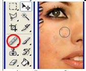 2. Buka file gambar yang sudah kamu sediakan Klik pada Healing Brush Tool (dengan otomatis kursor akan berubah menjadi bentuk Lingkaran)