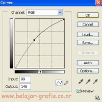 = Pilih menu Image > Adjustments > Curves : ganti nilai input dan output