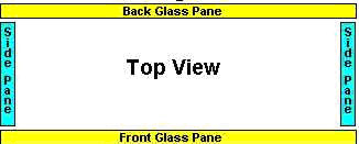 Many a time I have looked at expensive large aquariums in a store and thought to myself, "I could build that!" I mean, all an aquarium consists of is a few pieces of glass glued together, right? Well, yes! There are a few precautions to take to ensure that your homemade aquarium will hold strongly, but the basic process is actually very simple. An obvious factor is the weight of water. Water is very heavy. It is the water that will break your heart, if you underestimate that weight of your fish tank. A liter (around a pint) of water weighs one kilogram (about 2 pounds) and only takes up a space of about 4 inches high, 4 inches wide and 4 inches deep, that is 100 x 100 x 100 millimeters. Considering how many pints of water would be in a 55 gallon aquarium, you can see the astronomical amount of weight they have to contain! One material that could be used is plexi-glass . It is inexpensive and workable, but does have the drawback of being easily scratched, and is harder to join and seal than traditional glass. For my purposes here, I will be showing you how to assemble a tank using glass that has been professionally pre-cut for you, although if you know someone who has old glass around that is the right thickness and size, you can most certainly cut your own. Most glass is produced as "annealed" glass. Also known as "plate" glass, or "sheet" glass . When glass is in this state, it breaks into large chunks and slivers with razor sharp edges. The overall strength of 6mm (1/4 inch) plate glass is perfect for aquarium building. Do NOT use tempered glass. (If damage occurs, you won't have a tiny leak, it will burst all over the place!) Before using the glass you have cut, make sure that all edges have been well sanded. Don't build a tank more than 14 inches high with 1/4 inch glass. Plan ahead before cutting the glass by drawing a good schematic. Use precision measurements. This will insure a proper fit. The end pieces should be fit inside of the back and front panes, as shown in the diagram below, and the front, back, and two side panes should set on top of the bottom base pane. You can always have a professional glazier cut and prepare the glass for you. Use only a non-toxic 100% silicone sealant appropriate for aquarium use. Undoubtedly you will be putting a lighted hood on your tank, so design it accordingly. Do not put a solid glass cover on top of an aquarium, as this restricts the oxygen-carbon dioxide gas exchange efficiency, resulting in poor or inadequate aeration of the aquarium. Don't build your aquarium under humid conditions. Duct tape will not stick to glass when it is humid, therefore, the glass may move before the silicone can set up. Humidity slows the silicone curing process as well. With these instructions you can build a tank up to 55 gallons in size with 1/4 inch glass or plexiglass. Order of Construction: Start with the bottom base pane, install the sides, and lastly the back panel. For a larger sized aquarium (above 30 gallons), add a "brace" at the center of the tank. This can be done by using a six inch wide piece of glass siliconed to the top edges of the front and back pieces of glass. For extra strength, you can pancake two brace pieces together, using silicone to glue them together. How To Install the Glass Panes: As each pane is installed, as you go along you will be applying a thin but adequate solid line of silicone to each inside edge of all areas to be joined, then, at a slight forward angle, align and inset the piece of glass onto the bottom glass pane, and slowly tilting it upright, press it lightly, but firmly down into the silicone, fitting it solidly into position. Do not wipe off any excess silicone that might squeeze to the outside edges of the glass. This can be cleaned up or trimmed later on, once the silicone has fully cured. Before Assembly: Buff all the raw glass edges, just enough to take off the sharpness, with emery cloth or silicone carbide sandpaper. Clean all the glass pane joint areas and edges about 1/2 inch inward (any place where silicone will be applied) with acetone on a paper towel. Cut 16 strips of duct tape, about 5 inches long, and stick them to anything close by within easy reach that has a clean surface to it, that the tape won't stick to too much, with at least half of the tape hanging down freely. If during assembly you run out of pieces of tape, before installing another panel, cut some more pieces. If at any time during construction you have trouble with the tape not sticking to the glass, just clean the area with some acetone on a paper towel and try again. How To Assemble The Tank After all your glass pieces are cut and prepared, lay or arrange the pieces out so you know which piece is going where. Once placement of the panes has been determined, to help keep track of where each piece goes (which edge or side of the glass pane is going to go up or down, inside or outside, etc.) you can mark them with words or directional arrows using a washable felt tip marker. Take the bottom base piece of glass, place it on a flat, non-abrasive surface, and firmly press and stick 8 pieces of the duct tape (2 pieces on each side) to the glass from the bottom side with the sticky sides up. This is easily done by lifting up the glass from each side just enough to stick the tape pieces in place. Install the front glass piece. Once the front glass is in place, fold the 2 bottom pieces of duct tape upward and stick them to the front of the glass. Tip: This step is much easier to do with an assistant to hold the front glass pane upright and in place while you complete installation of the first side piece in the next step. Using the same installation method, install the first side panel , fold the 2 bottom pieces of duct tape upward and stick them to the front of the glass, and secure the side piece to the front piece of glass by wrapping 2 additional strips of duct tape around the corner from one side to the other. Following the same procedure as