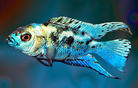 Common name: Blue Dempsey, Electric Blue Dempsey Scientific name: Archocentrus octofaciatus, var. blue