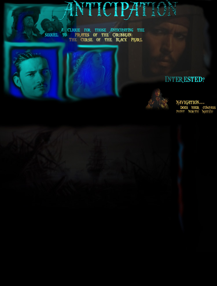 | "Pirates of the Caribbean' is the property of Walt Disney Enterprises. I am in no way making money off of this site, so no harm done... I hope (paranoid) |