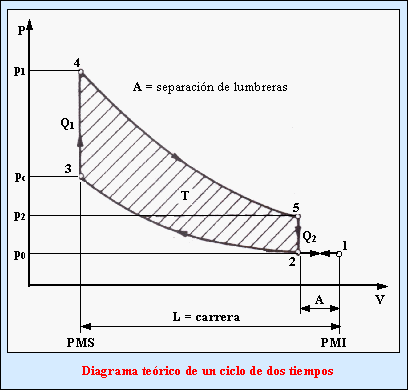 Diagrama del ciclo teórico de un motor de dos tiempos