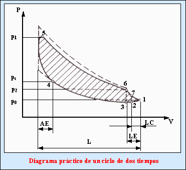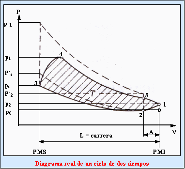 Diagrama del ciclo real de un motor de dos tiempos