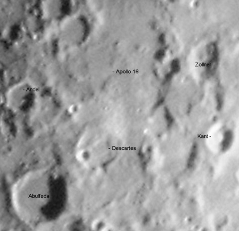 This area of the moon may look quite ordinary but it is part of the lunar highlands. The site is nearly 20,000 feet above other manned landings. For some scale, the crater Abulfeda is about 35 miles wide.