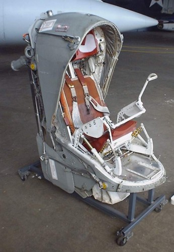 | This is the B-58's encapsulated ejection seat. It was designed to snap shut to protect the crew members in the event of a high speed ejection. |