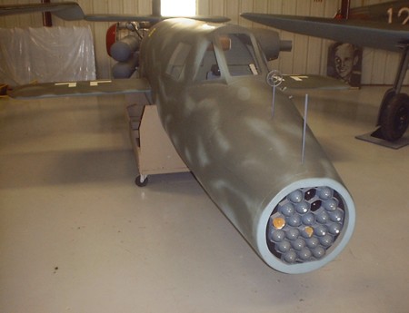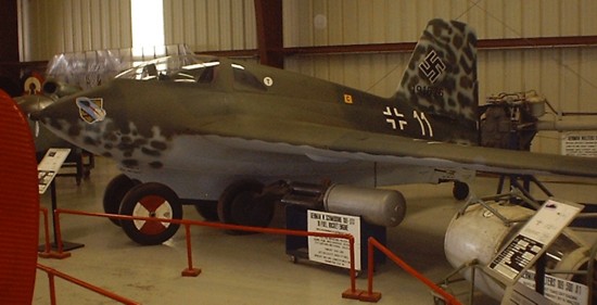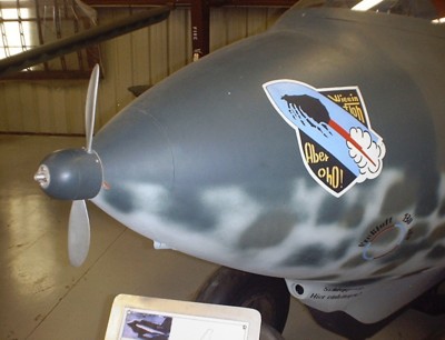 | The "Volksjaeger" was made partly of wood and was an interesting design. Drooped wingtips, a "butterfly" type twin tail fin and a early ejection seat are some unique features for this plane. The max speed was 553 mph but it was an unstable aircraft. Only pilots with experience could safely fly this craft. |