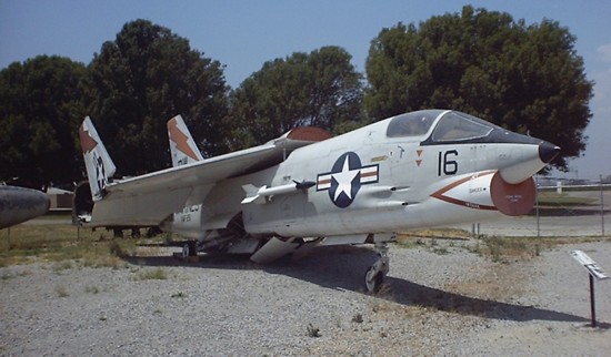 | Vought F8U First flown in 1955, this plane operated from aircraft carriers in the '60s and fought in the Vietnam War. Note the folding wingtips and moveable wing. |