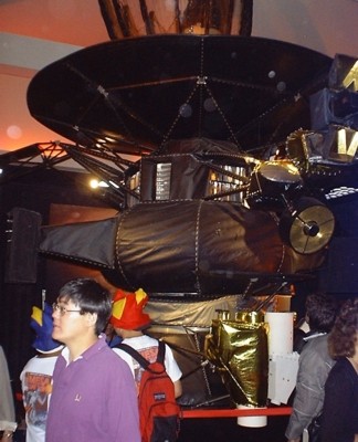 | Another view of the antenae. Featured here is one of the 2 Radioisotope Thermoelectric Generator booms. The RTGs provide power using decaying radioactive isotopes. Click to see the RTG closeup. |