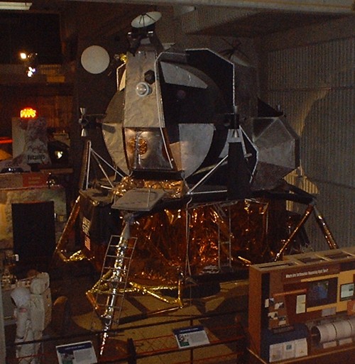 | This Lunar Module is modeled after the Apollo 16 LM. According to the Field Guide to American Spacecraft, the Decent stage (lower part) is an engineering model used at Marshall to test the Lunar Roving Vehicle that was built and tested there in Huntsville. The Ascent Stage (upper portion) is a model. |