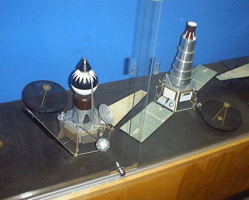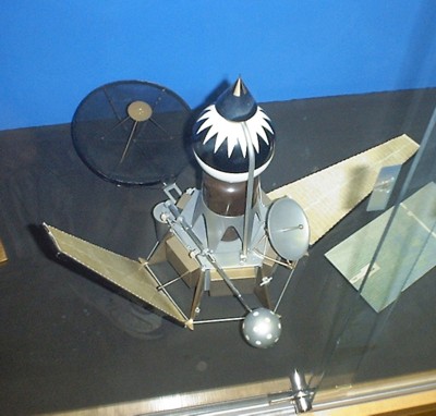 | Ranger 3, 4, and 5 can be identified by the balsa wood sphere on its top. The ball housed a seismometer and would have recorded moonquakes. |