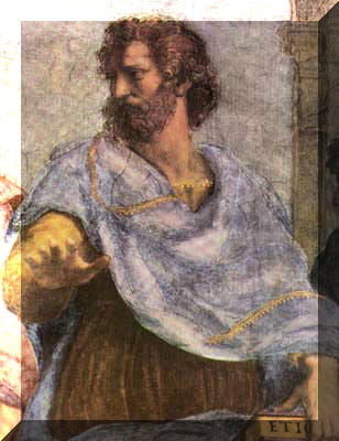 Aristotle was not the first to suggest axiom systems. Plato had made the bold suggestion that there might be a single axiom system to embrace all knowledge. Aristotle went for the somewhat more possible suggestion of an axiom system for each science. Notice that Euclid and his axiom system for geometry came after Aristotle. Another topic to which Aristotle made major contributions was natural philosophy or rather physics by today's terminology. (I [EFR] show my age and the traditional nature of St Andrews University if I remark that in the 1960s a pass in 'General Natural Philosophy' formed part of my degree.) Aristotle looks at matter, change, movement, space, position, and time. He also made contributions to the study of astronomy where in particular he studied comets, geography with an examination of features such as rivers), chemistry where he was interested in processes such as burning, as well as meteorology and the study of rainbows. As well as important works on zoology and psychology, Aristotle wrote his famous work on metaphysics. This, according to Aristotle, studies [2]:-
