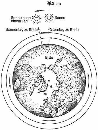 zwischen dem Sonnentag und dem Sternentag her, denn die Sterne bewegen