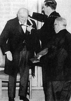 Aus der Welt von gestern: Winston Churchill bei der Entgegennahme des Preises. Churchill war einer der Preisträger, die eine ungewöhnliche und staub-aufwirhelnde Rede in Aachen hielten.